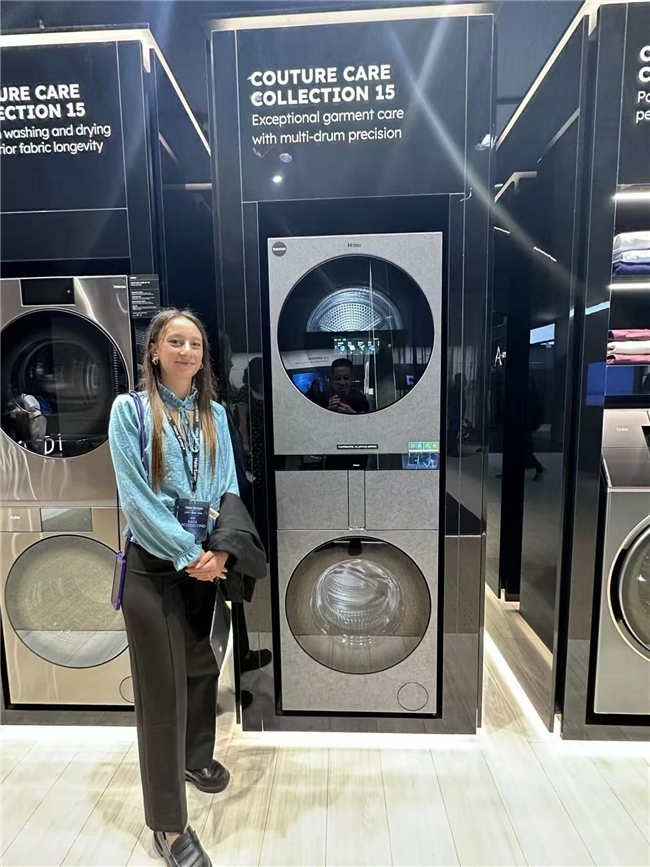 最后是便捷操作需求。多筒疊加雖然簡單實現了分區洗,卻也使操作更加繁瑣而費時費力。針對多水路延長等待時間,融合·洗護家原創網格式一體水電系統,將16水路高效整合,實現9進7出分支進出有序,是唯一直接適配家用水電的四筒洗衣機;針對多系統操作繁瑣,AI智慧交互系統升級操作體驗,一屏智控四筒,無需分屏頻繁操作,配合AI人感交互,在30cm范圍內靠近,2秒即可開機,揮手開下筒、敲擊啟上筒,智能語音一呼百應,徹底解放雙手;針對不同身高操作不便的問題,設計1400mm黃金高度讓用戶平視即可操控,還以1.6米用戶為參照設計干衣機取衣口高度,將人體工學理念深度融入洗衣機設計。